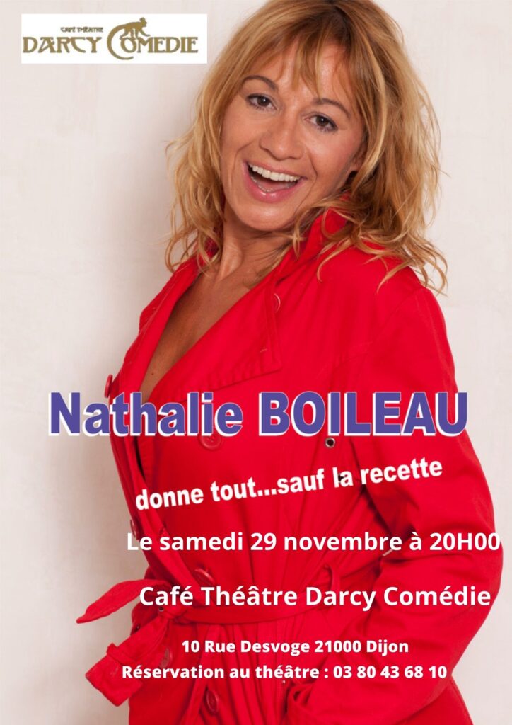 Nathalie donne tout...Sauf la recette au Darcy Comédie le samedi 29/11 à 20H00.