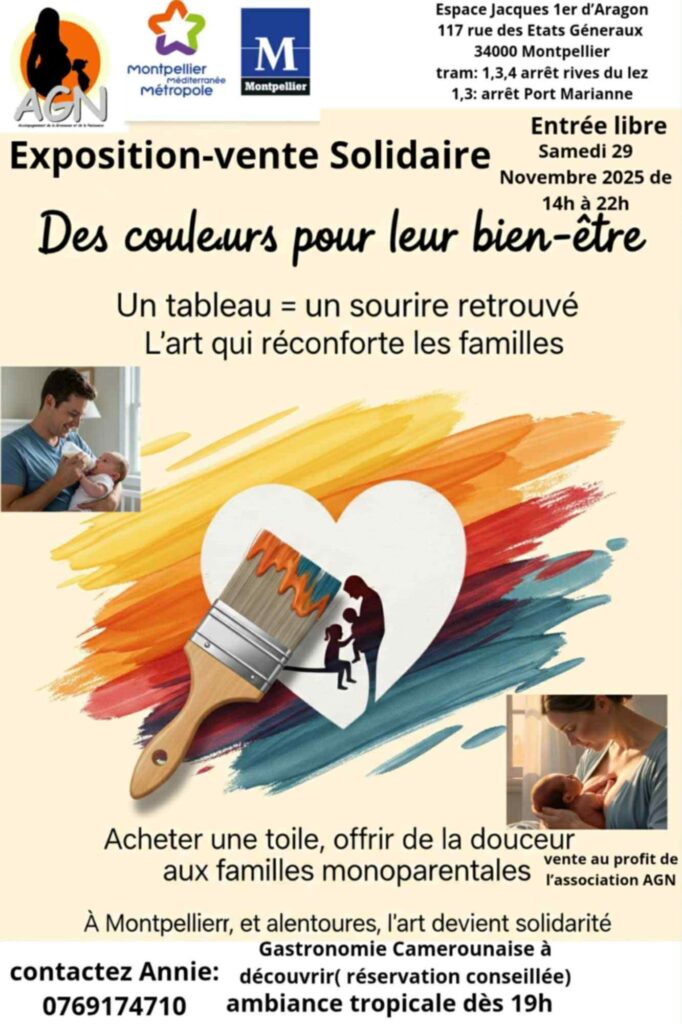 Exposition-vente solidaire à Montpellier en soutien aux famille monoparentales le samedi 29 novembre de 14H00 à 22H00.